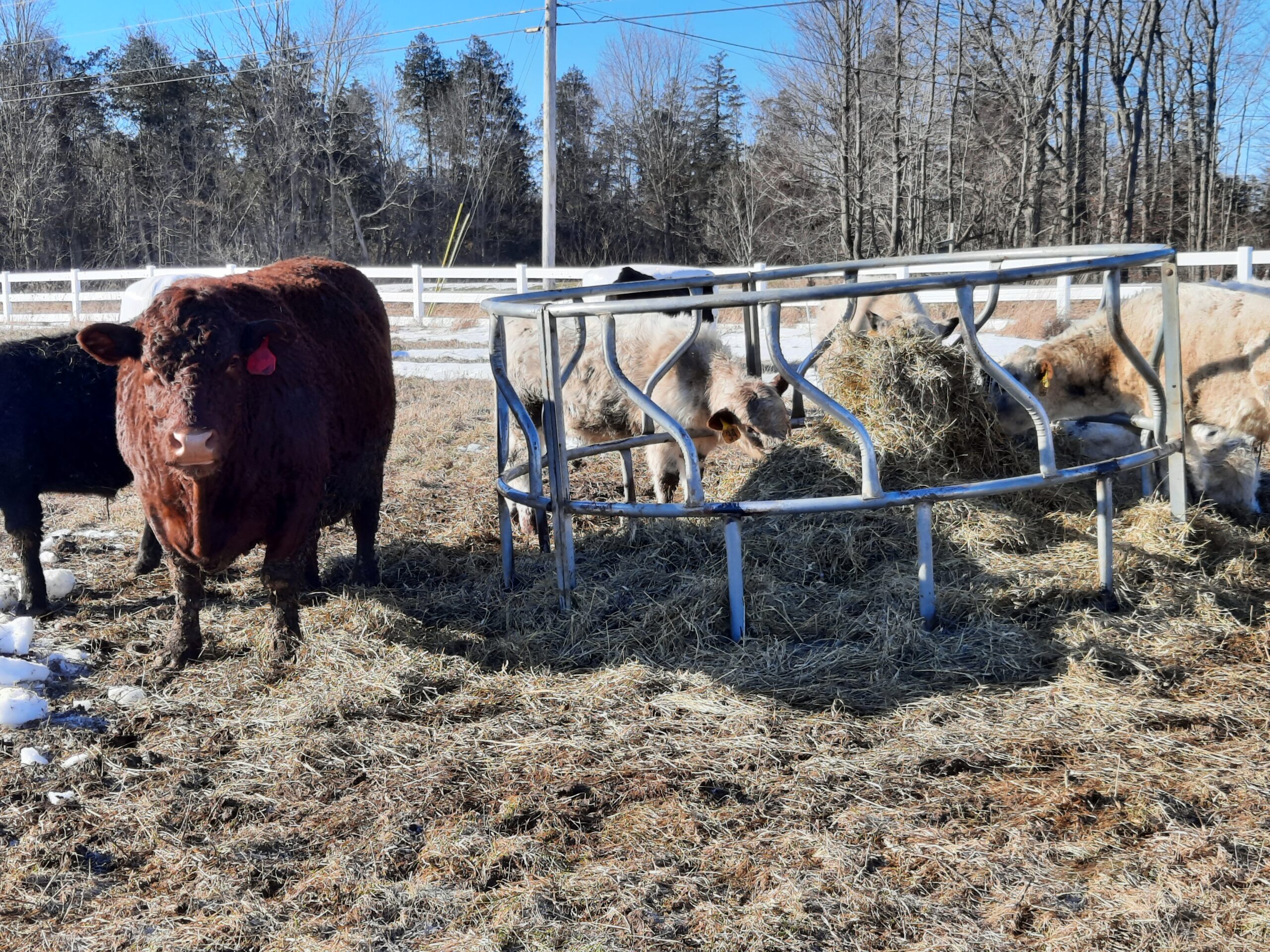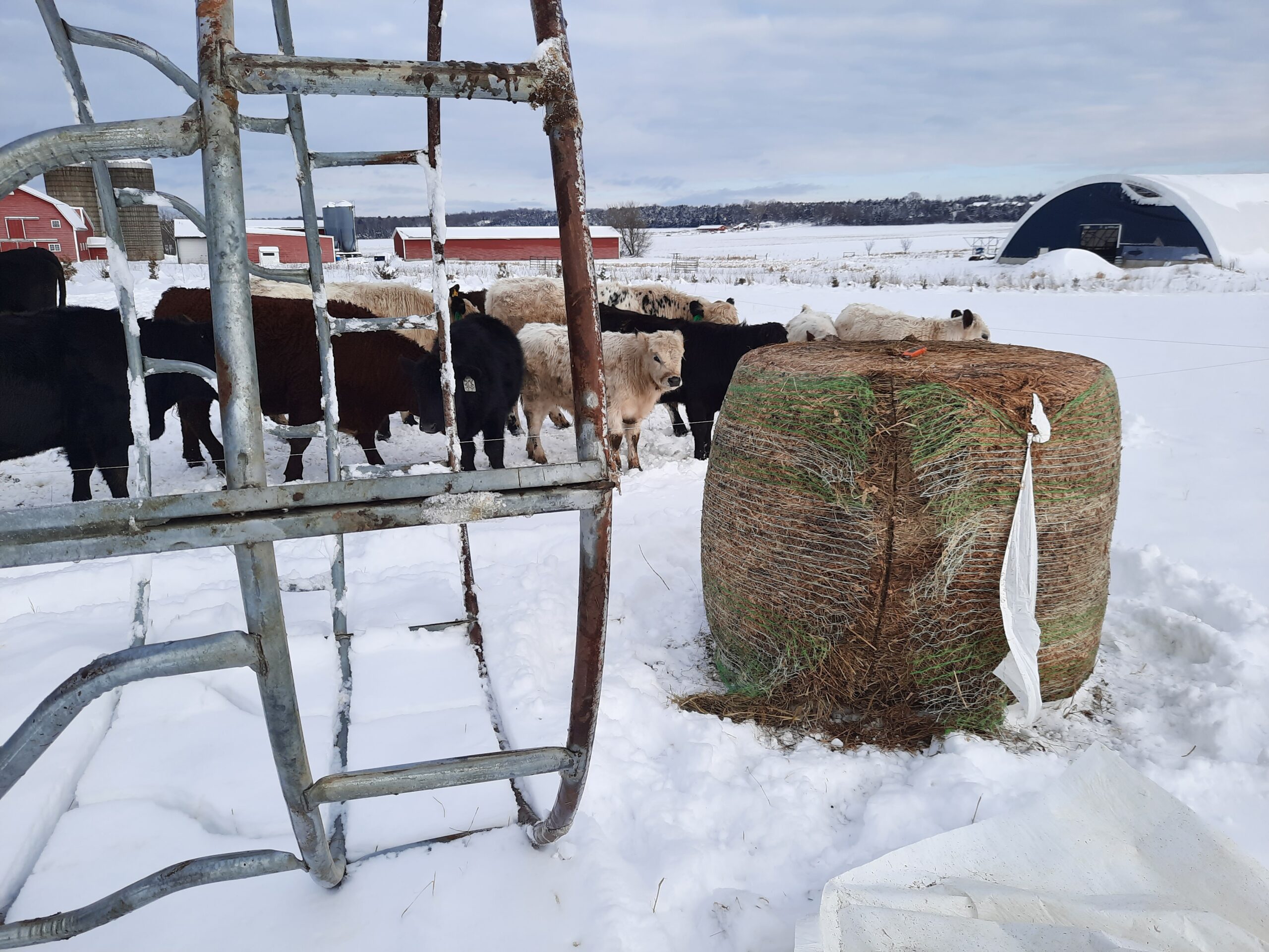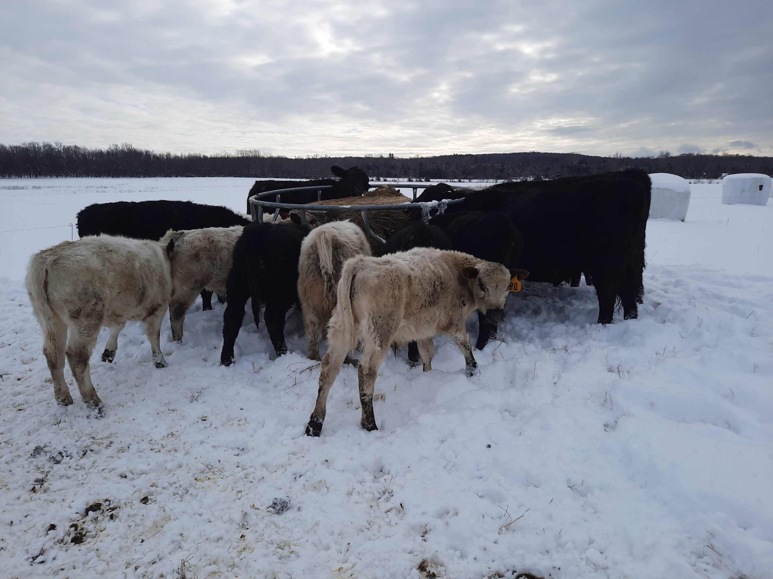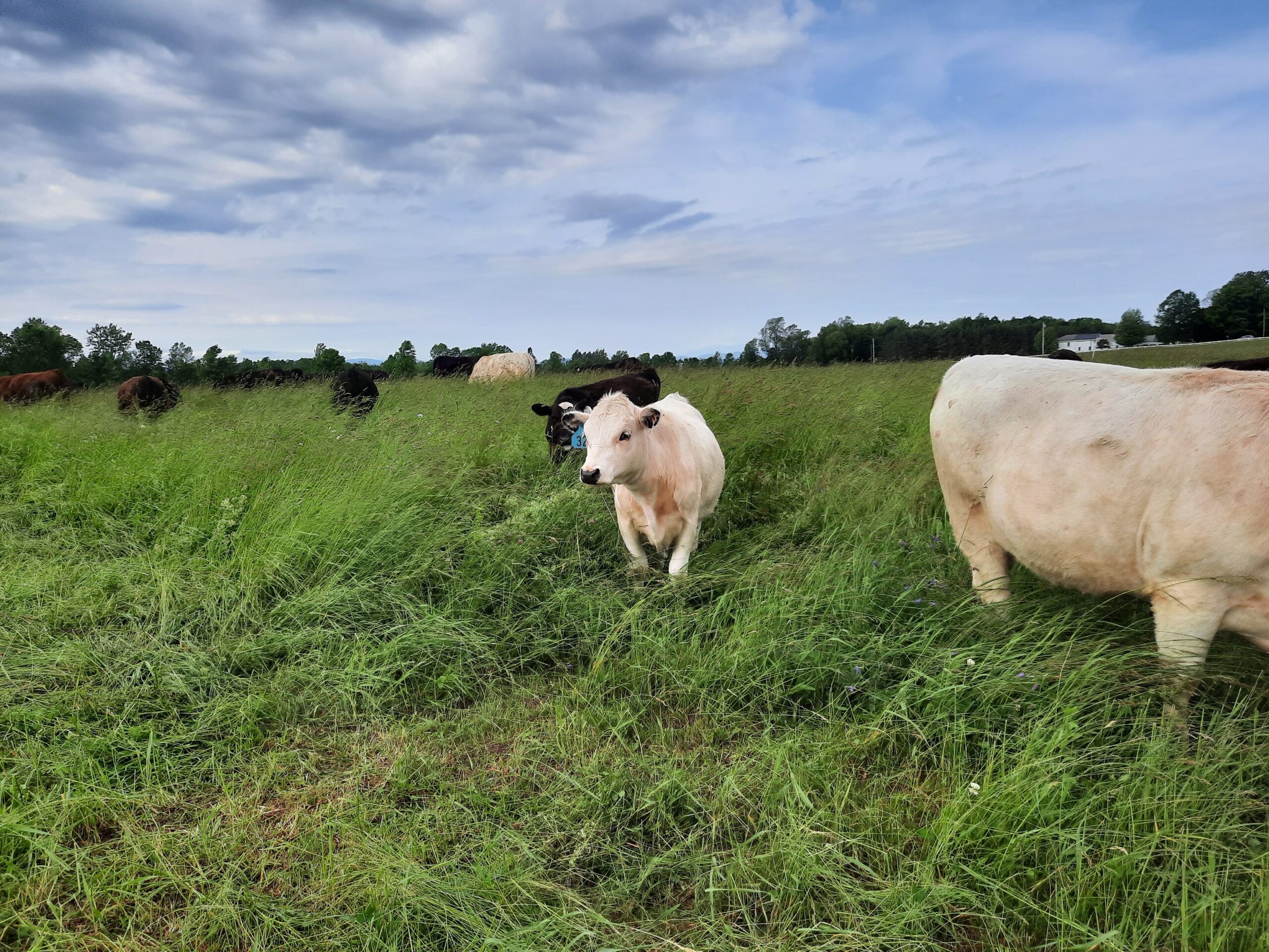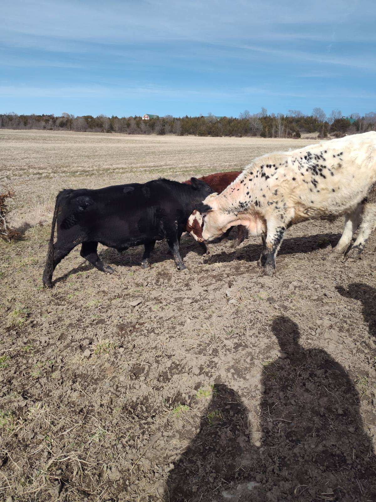 Isn’t she a beauty!?! Her name is “Fence Jumper”. Every year she delivers a healthy calf to raise. She cleans, nurses and protects the calf. She is also a herd leader, quick to notice when it is time to move to new grass or to go to where we have bales of hay laid out for the herd. She is calm, curious… and intelligent. Several years ago, during breeding season, when her mom was grazing in another paddock with the other cows and the bull, she went over two live polywire lines to be with her mom. How sweet is that? The next day, when we noticed she was with the wrong herd, we put her back with the two-year-olds who were gaining weight and would be going “on the truck” the next year. But the next year, we were surprised to find a sweet little newborn heifer in the wrong herd. Apparently, Fence Jumper had taken steps to change her career path. So we put her and the calf with the breeding herd. And she has been grazing happily ever after.