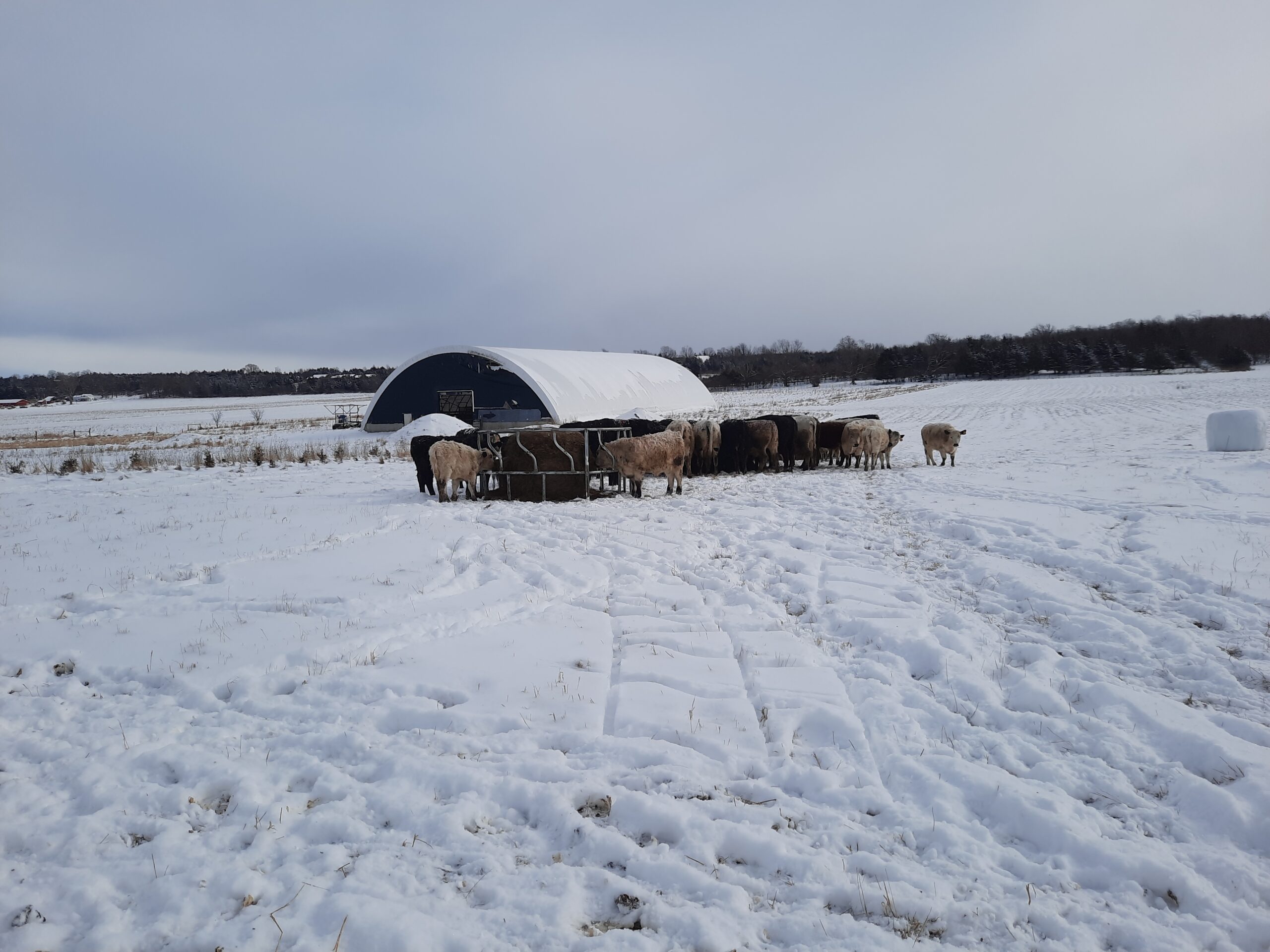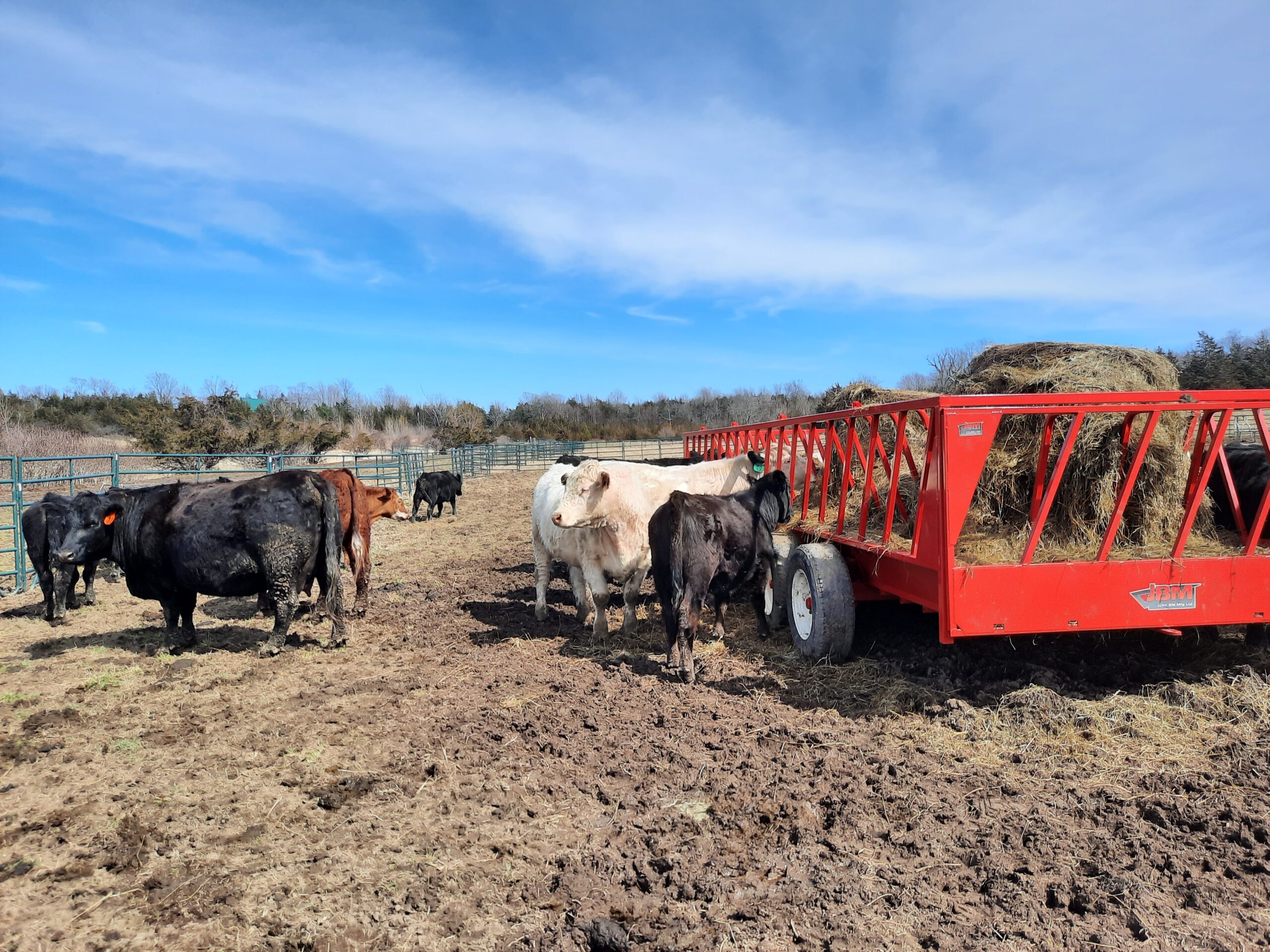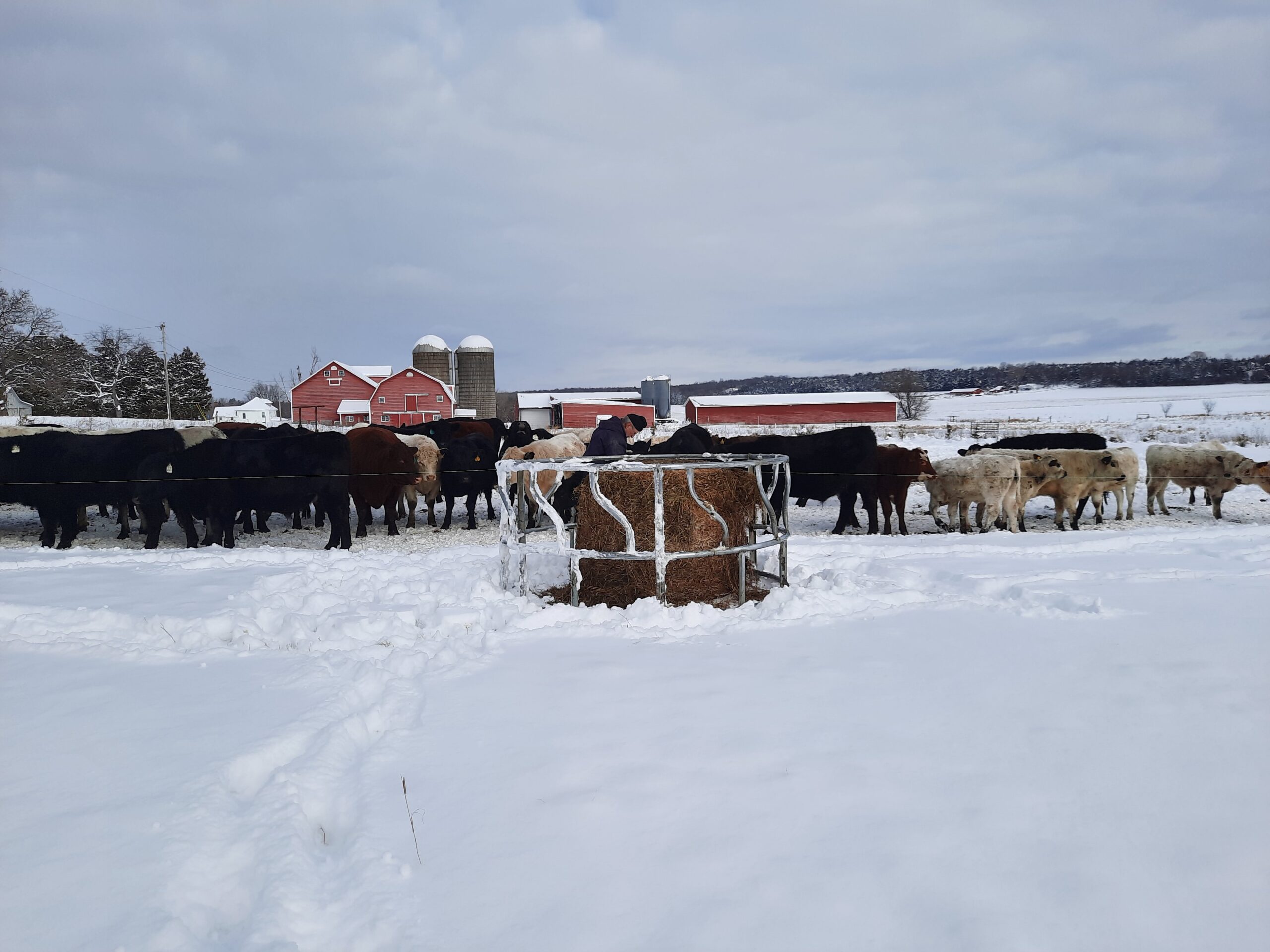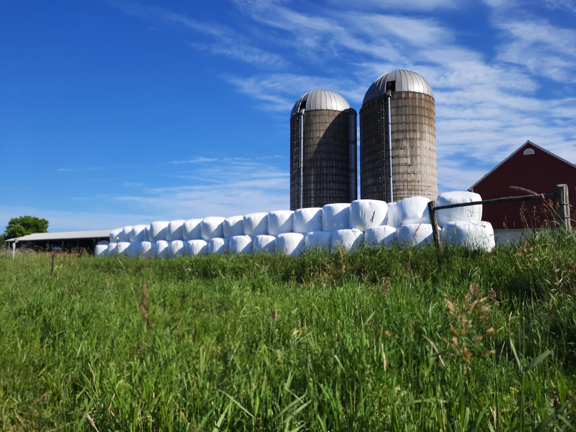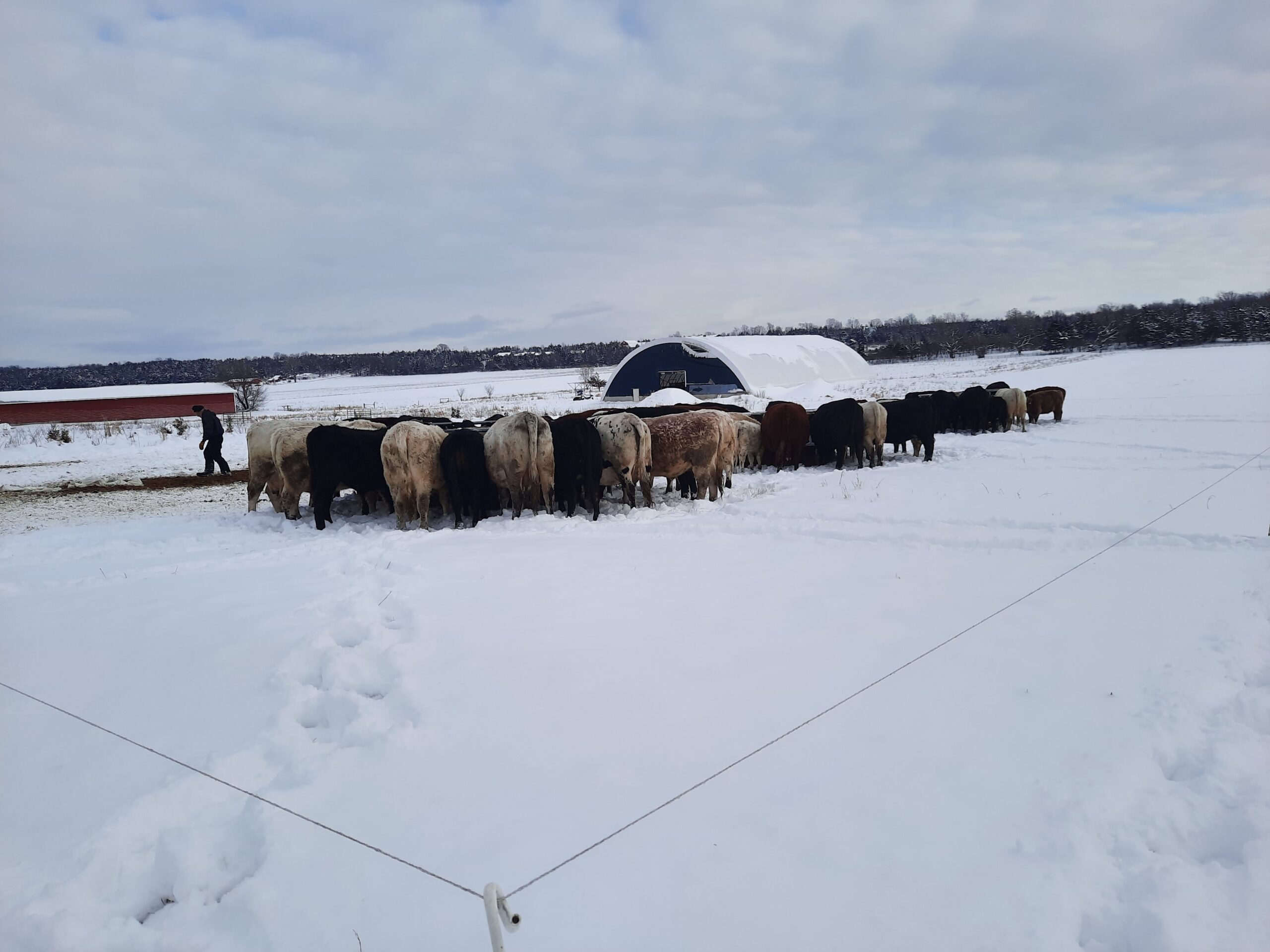 Isn’t she a beauty!?! Her name is “Fence Jumper”. Every year she delivers a healthy calf to raise. She cleans, nurses and protects the calf. She is also a herd leader, quick to notice when it is time to move to new grass or to go to where we have bales of hay laid out for the herd. She is calm, curious… and intelligent. Several years ago, during breeding season, when her mom was grazing in another paddock with the other cows and the bull, she went over two live polywire lines to be with her mom. How sweet is that? The next day, when we noticed she was with the wrong herd, we put her back with the two-year-olds who were gaining weight and would be going “on the truck” the next year. But the next year, we were surprised to find a sweet little newborn heifer in the wrong herd. Apparently, Fence Jumper had taken steps to change her career path. So we put her and the calf with the breeding herd. And she has been grazing happily ever after.