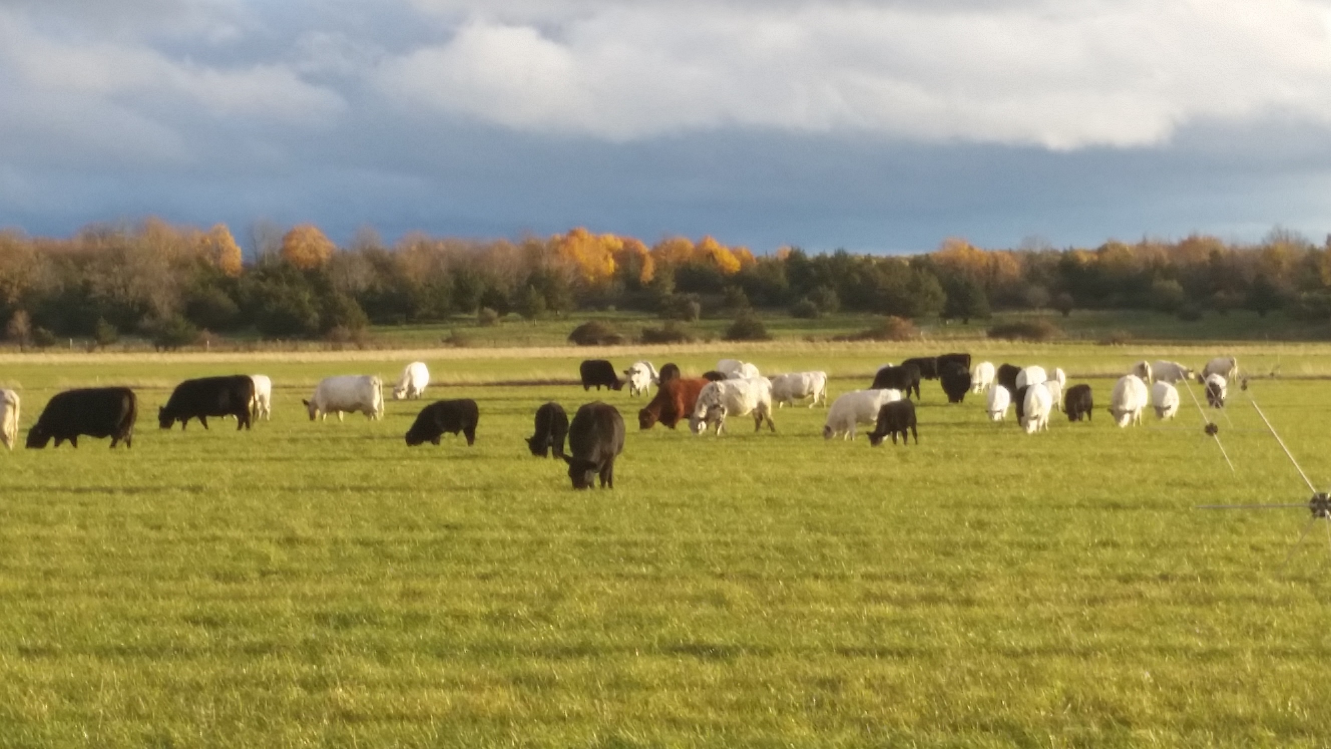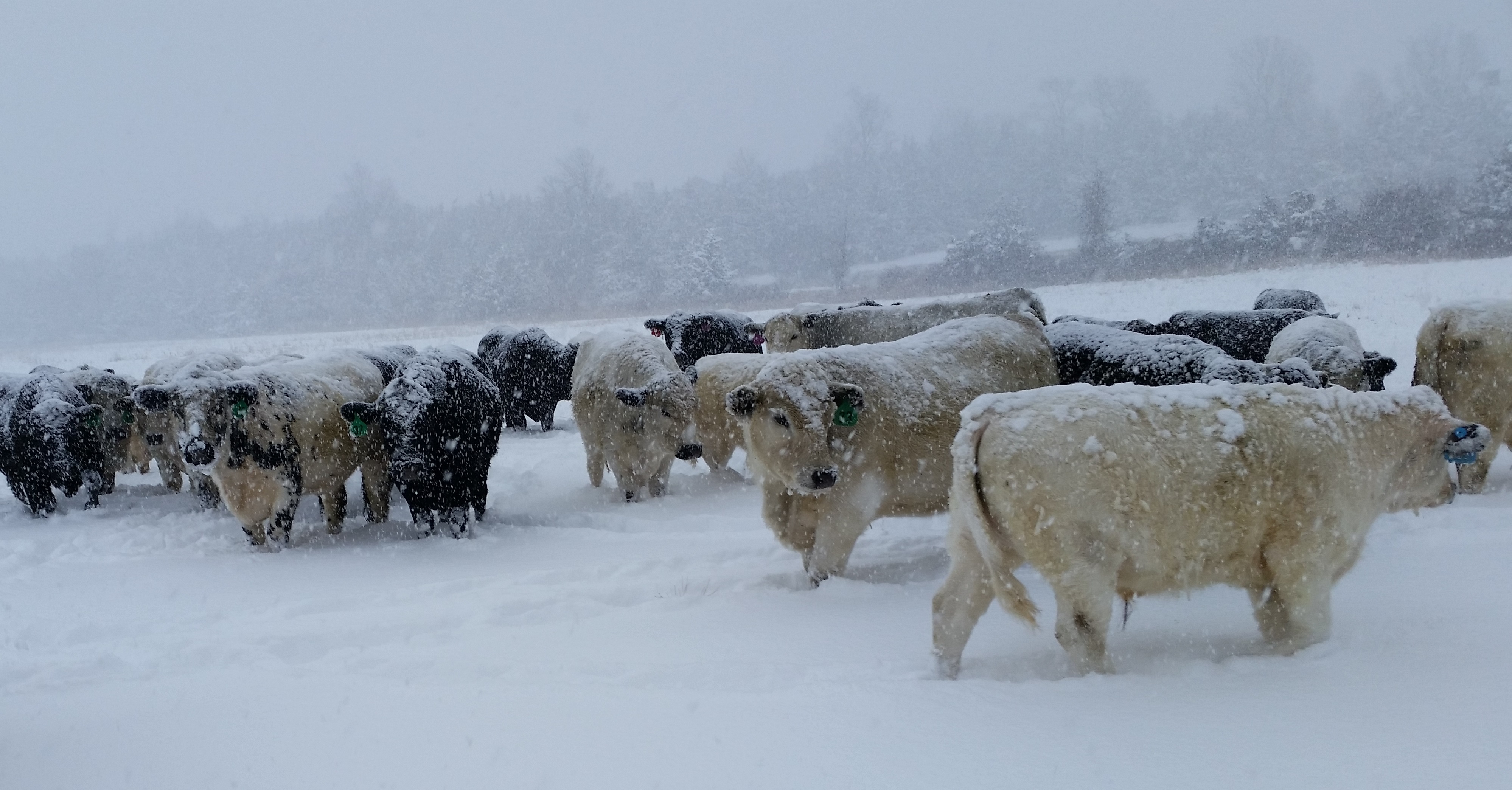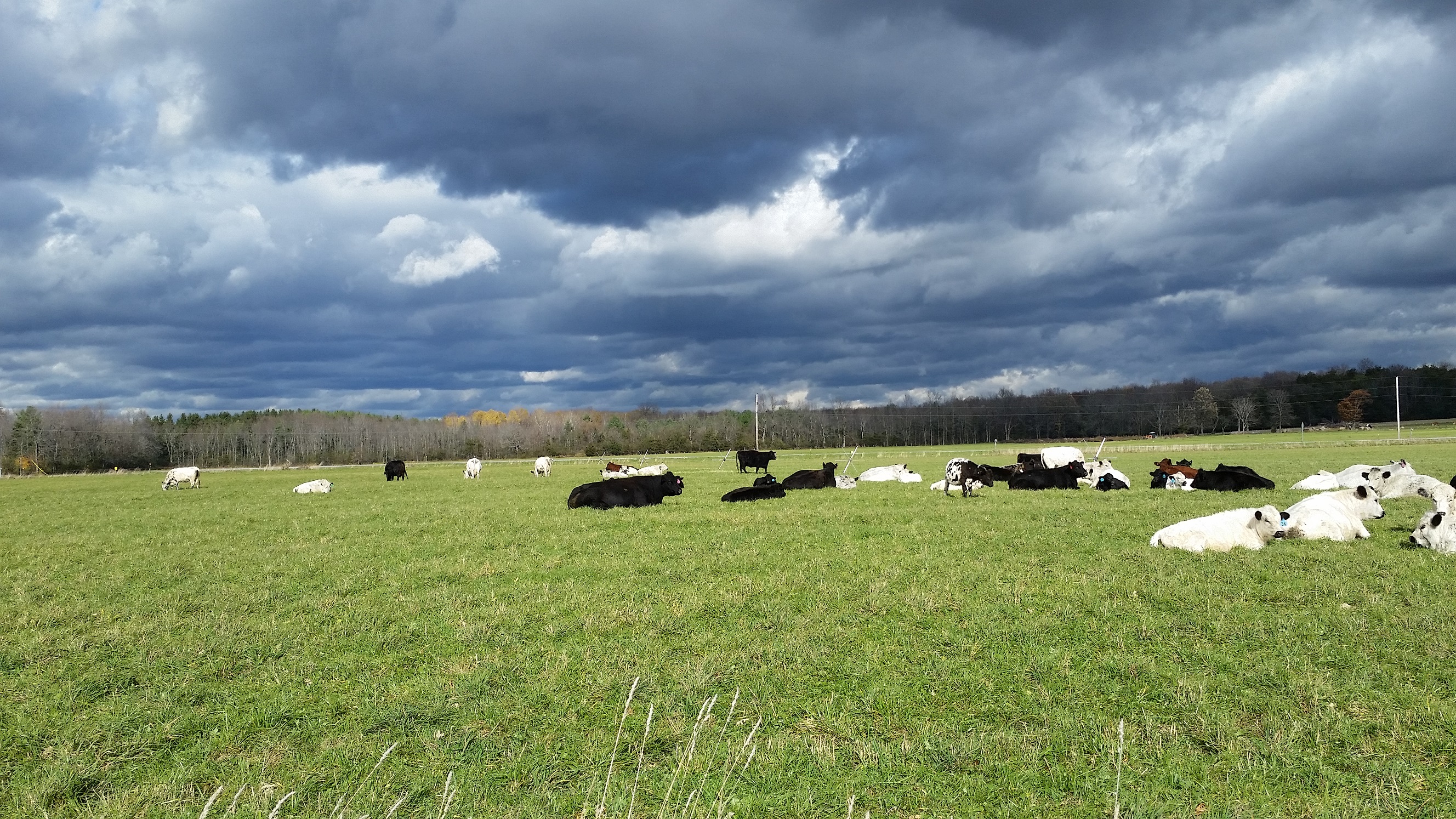 A tale of adventure: We had planned on celebrating the end of a successful season of grassfed beef production, as soon as we loaded our last two British White cattle into the trailer. But the trucker was late, arriving after dark. The driver backed into the barn and opened the trailer gate with bright lights illuminating the interior of the trailer in an otherwise pitch black barn. The heifer was drawn to this novelty and slowly climbed in to check it out. (We closed the divider gate behind her.) But where’s the steer? We shone our flashlights into every corner of the barn, until we saw the twisted gate. Free into the night! Given the escape route taken, he either turned right and was up a quarter-mile-long dead-end farm road, or he turned left with access to West Shore Road. We could be up all night! We jumped into the ATV and tore up the dead-end lane, hoping for the best. Had we closed all the gates? The ones leading to the 80-acre north field? And there he was — looming large in our headlights, but just as quickly stepping outside their focus and floating away like a ghost — a fast ghost. Quick! Call for help to close off the West Shore Road access, putting up electric fencing so that there was only one lane, and it led to the barn. Then out again in the ATV to find our steer and guide him in. After that, it was easy. He seemed to want to go back to where he would not be so alone in the dark. Shakespeare said it best: “All’s well that ends well.” We DID get to celebrate.